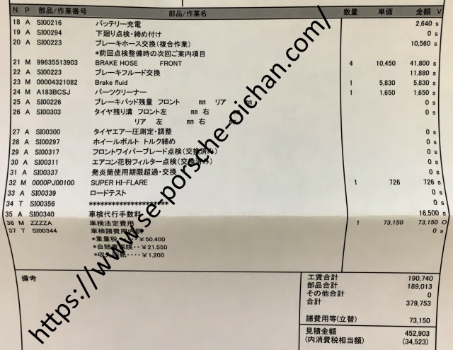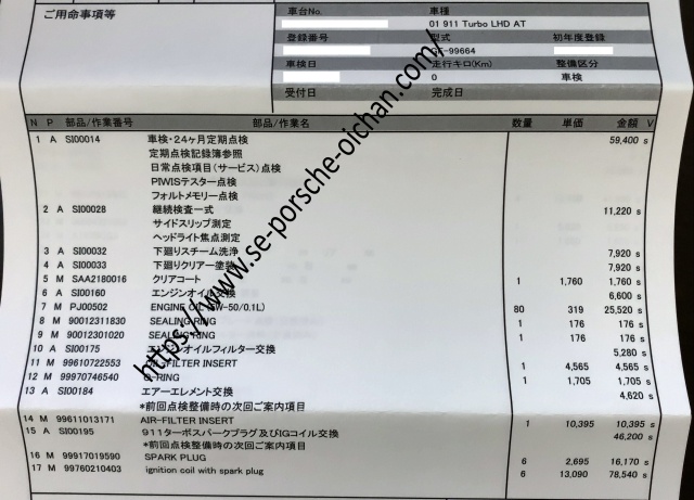 車検の項目自体も至って普通でポルシェだからめちゃくちゃ値段がするっという訳でも無いです。