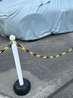 写真の通り、設置しているポールからそれなりの距離に車があるので意図して侵入しない限りはリア側にはマーキングできません。